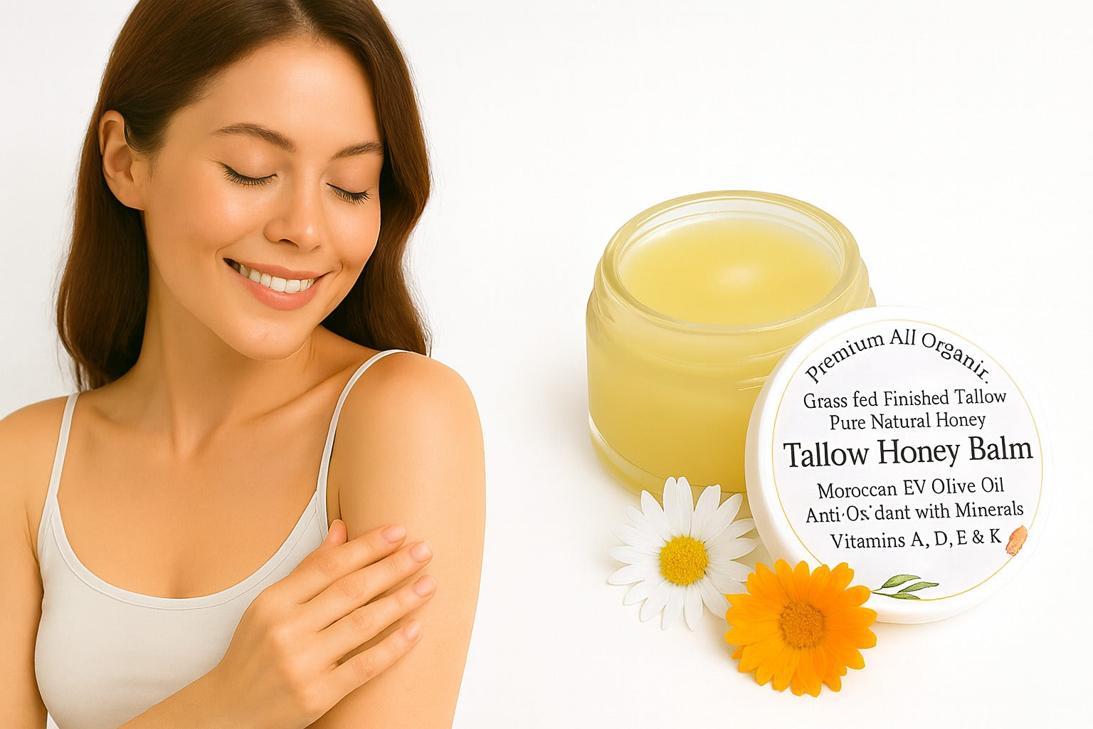 SmoothSoftSkin Honey Tallow Balm is a rich blend of pure honey, nourishing tallow, and Moroccan EVO oil that melts gently into the skin for deep hydration and a healthy, natural glow. Its silky texture absorbs instantly without greasiness, leaving your skin soft, smooth, and refreshed. Packed with antioxidants and calming properties, it helps support a balanced, healthy-looking complexion and soothes everyday skin discomforts. Suitable for all skin types and all ages, this full-body balm is perfect for daily use and adds a luxurious touch to your self-care routine.